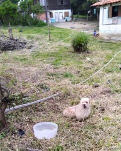 Ao chegarem, porém, constataram que o cachorro da família ainda estava preso por uma corrente dentro do imóvel tomado pela fumaça. Em uma ação rápida, o sargento Costa entrou na casa e conseguiu resgatar o animal com segurança.
